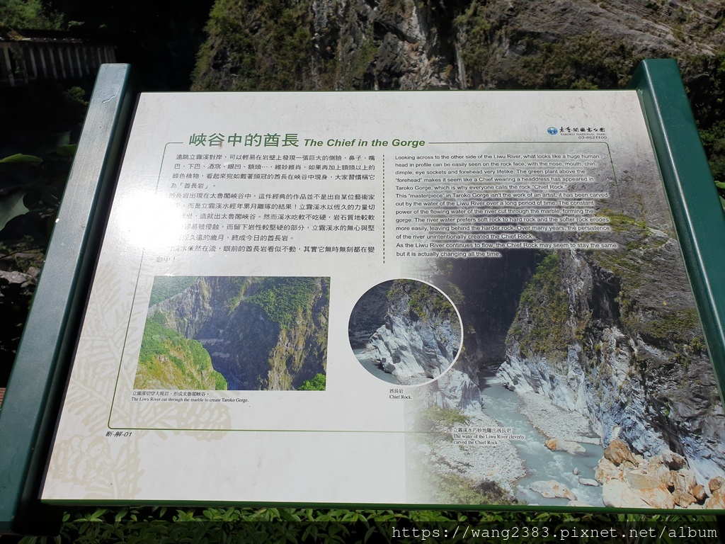 溪谷對岸有一塊巨大岩石,長年受河水沖蝕後,看來頗似一個印第安人頭的側面,極其逼真有趣。