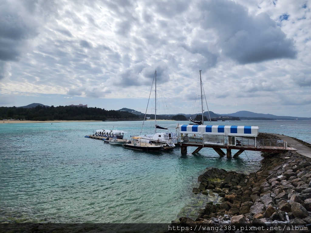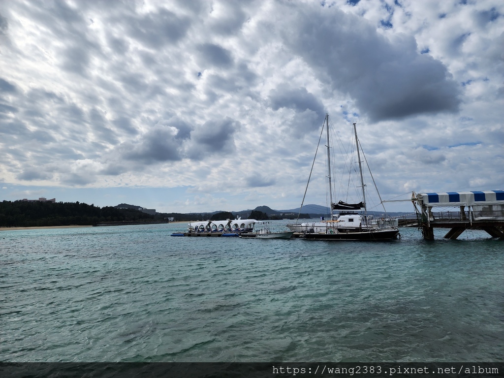 到沖繩名護市Busena海灘,這裡有一大片沙灘除了可在海邊戲水,也可搭玻璃船出海觀賞海底世界,雖然搭乘時間不到半個小時,但也蠻有趣,只是解說用日文,有點可惜。