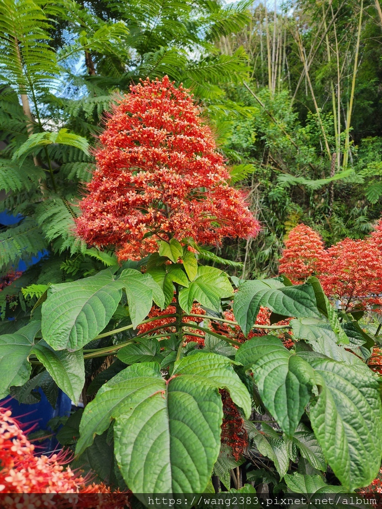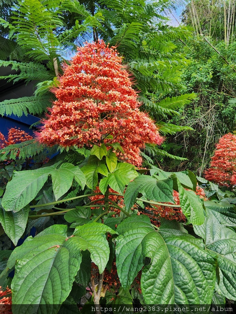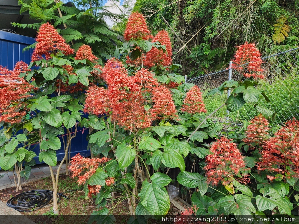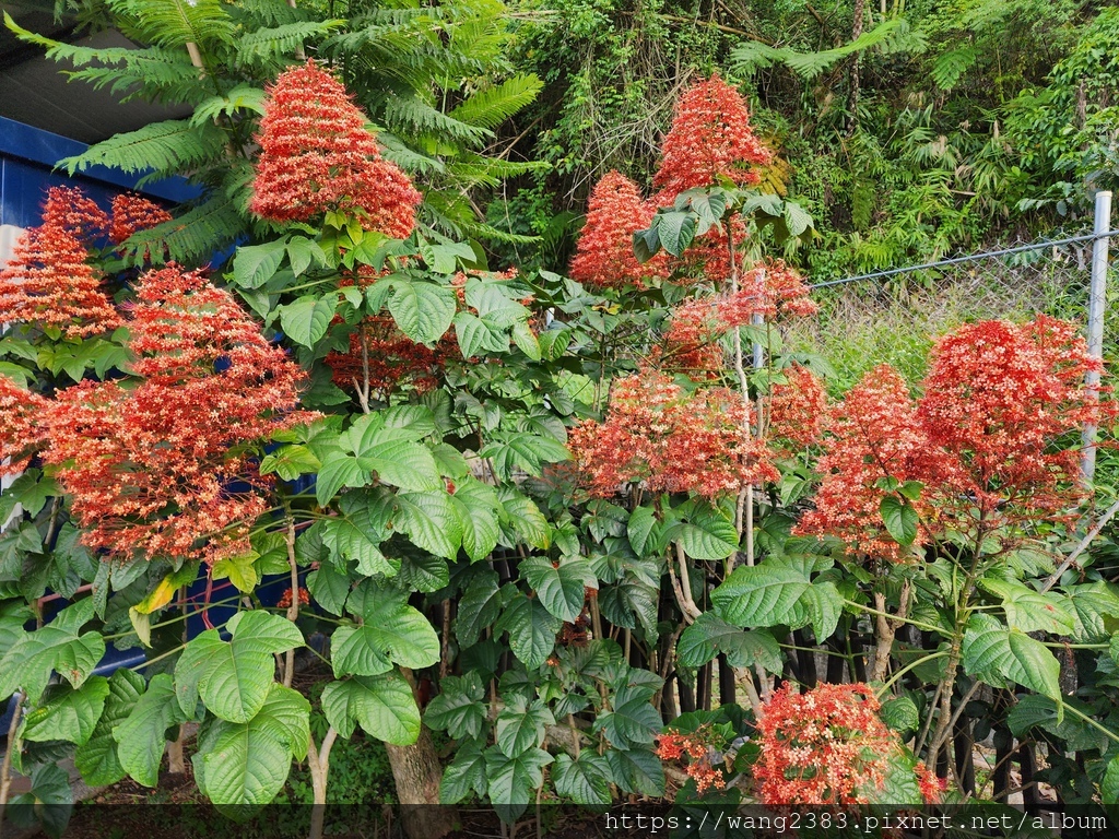| 分布: | 台灣偶見栽培,對環境的適應性大,無論在林下或空曠處均生長良好,其大型頂生之圓錐花序,鮮艷紅色,極為美觀為良好的綠美化材料。 |