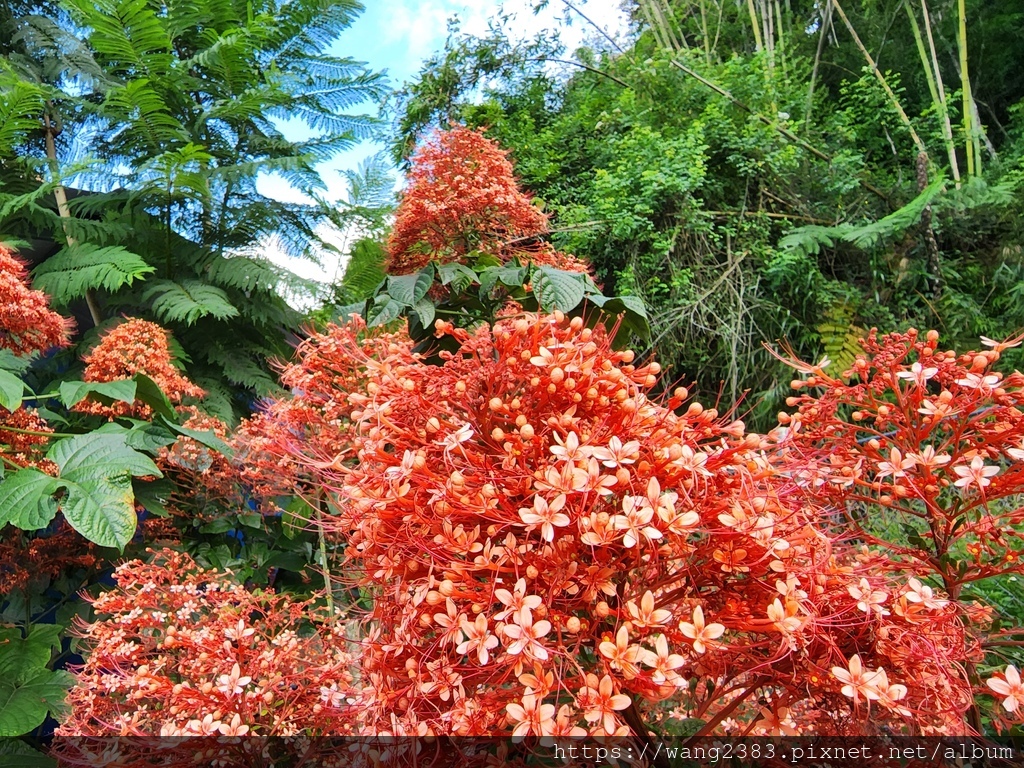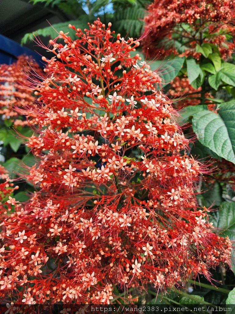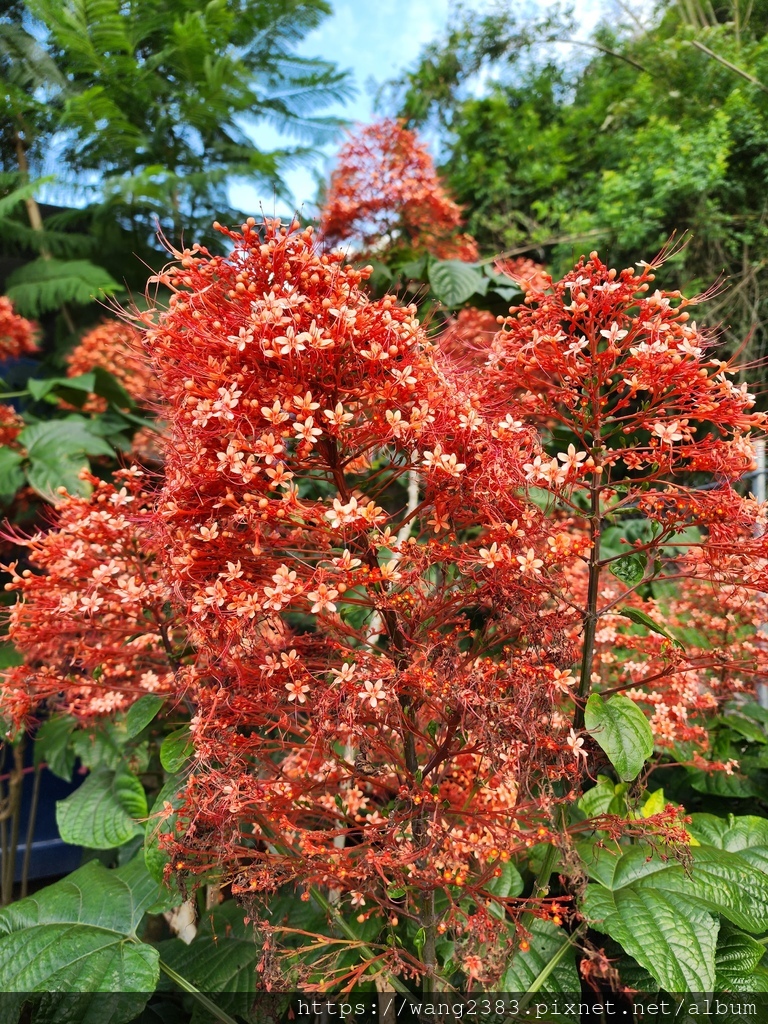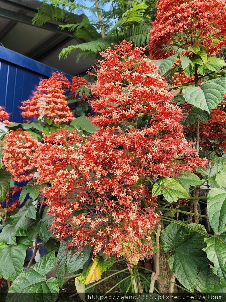 | 分布: | 台灣偶見栽培,對環境的適應性大,無論在林下或空曠處均生長良好,其大型頂生之圓錐花序,鮮艷紅色,極為美觀為良好的綠美化材料。 |