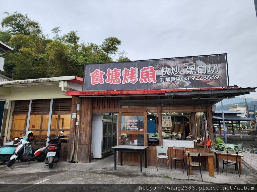 食塘烤魚位於宜蘭縣員山鄉往福山植物園的7丁省道上,我們是要到福山植物園發現這家餐廳,就進來吃晚餐,餐廳本身有停車場,路邊也可停車很方便。這裡以烤魚為招牌,烤魚碳烤一尾450元和鹽烤一尾400元兩種,另位有宜蘭名產西魯肉,各種快炒和湯,基本上價位平實,食材新鮮口味不錯。來這裡才知道旁邊是員山鄉景點,「螃蟹冒泡」因有冷泉自地下冒出有水泡而得名,水很清澈內有小魚小蝦,可順道一遊。