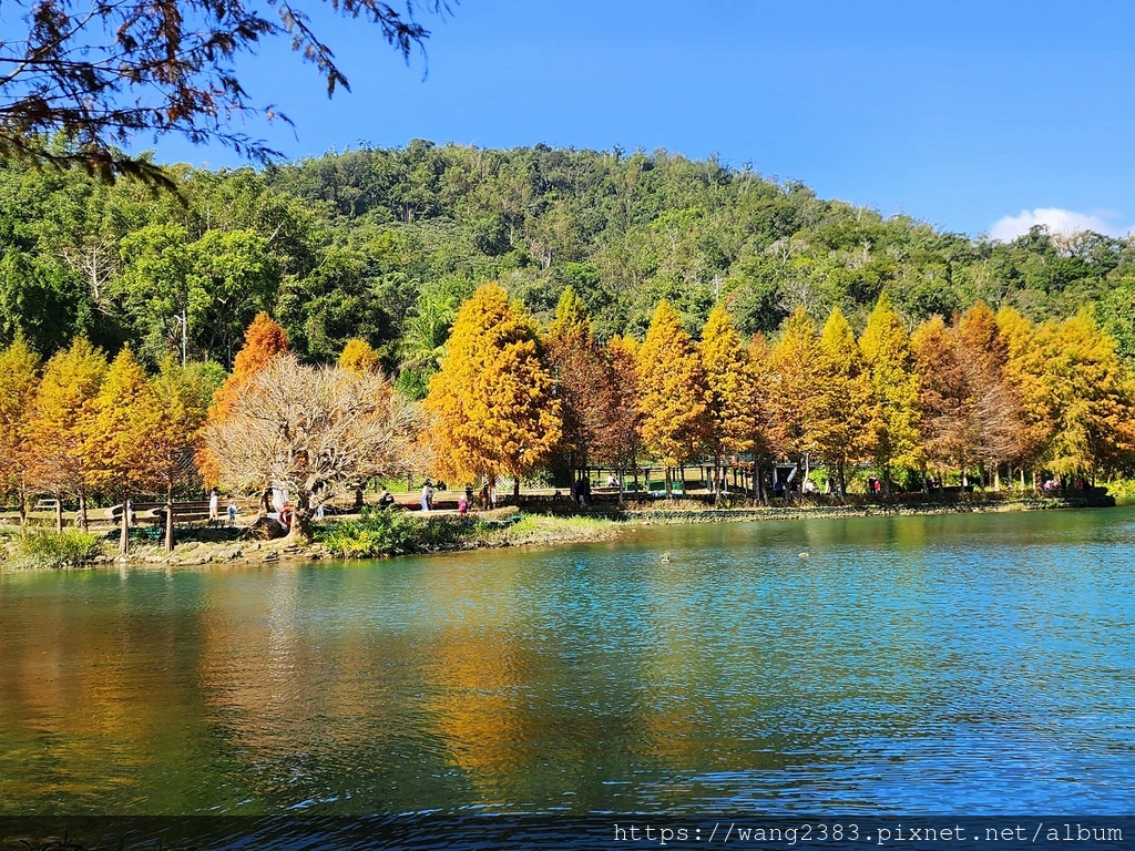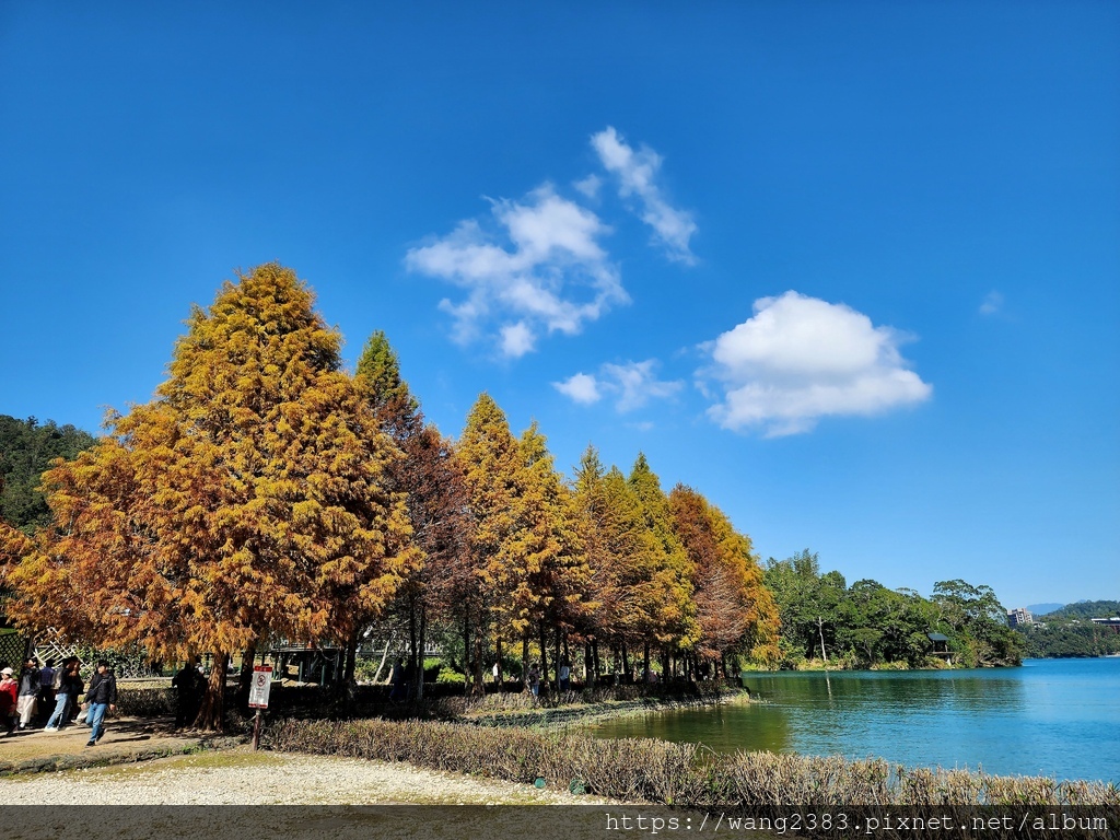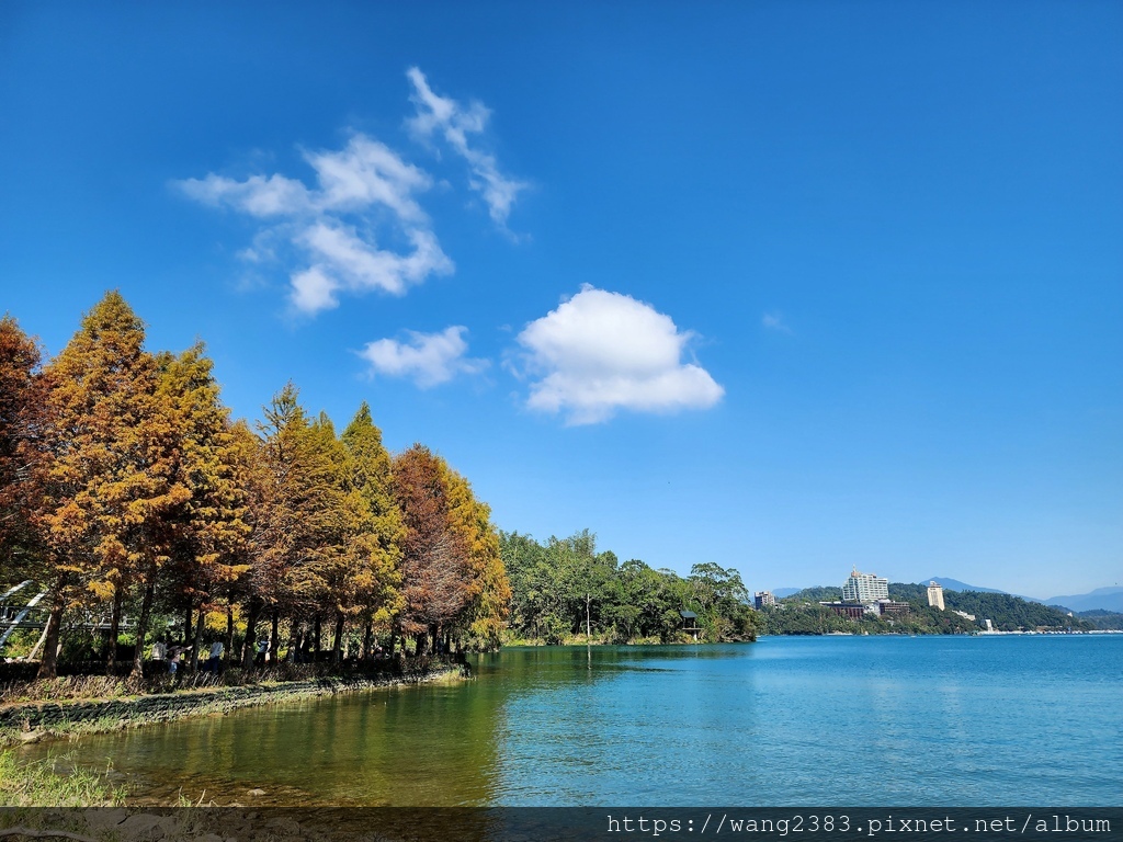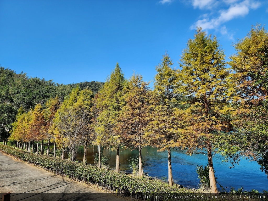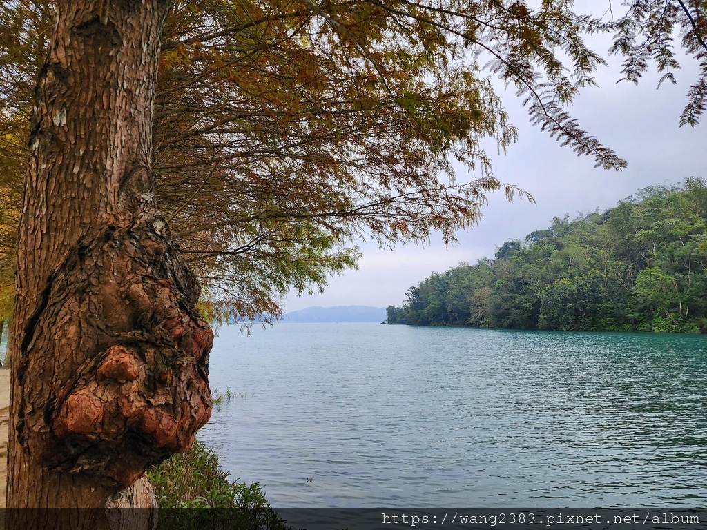 日月潭向山遊客中心是一個建築很有特色的地方,在這裡可以遠眺涵碧半島風景很美。每年的12月中到1月中旁邊的向山落羽松轉黃紅,搭配日月潭水很漂亮,我們是2024年12月19日和20日連兩天來此,落羽松雖未全紅,但已經很漂亮。