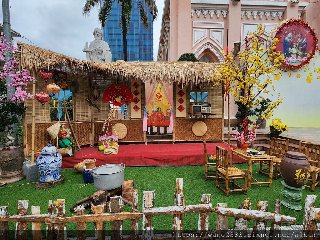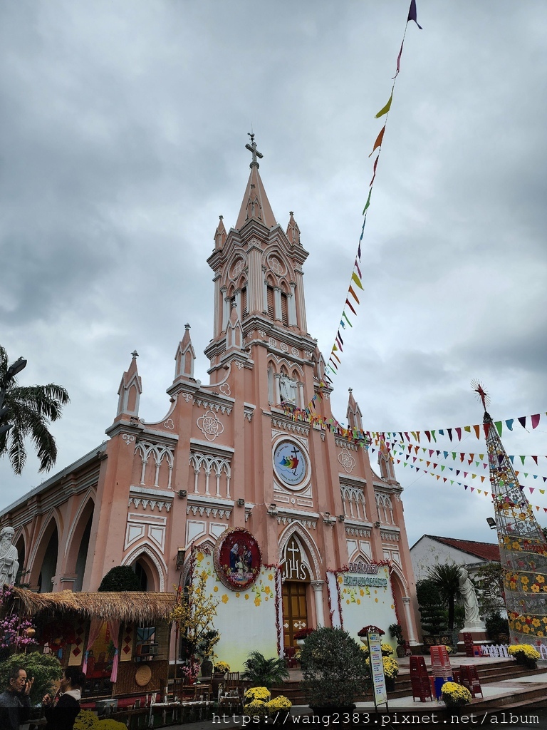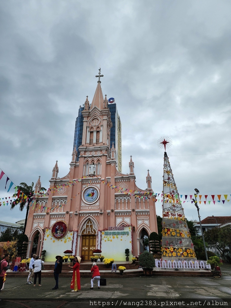 粉紅色外牆的峴港大教堂,真正名稱是「峴港耶穌聖心主教座堂」建築風格是浪漫的哥德式,充滿可愛、夢幻感,也因此成了許多遊客拍照打卡的熱門景點。教堂外觀看起來十分新穎,但其實已有90多年的歷史,建於法國殖民時期1923年,因教堂尖塔上有一個具代表性的公雞風向標,因此又稱作「公雞教堂」。教堂內部只有在彌撒時間才會對外開放,如要入內參觀,最好先查好時間再前往。大部分遊客是在教堂外散步,欣賞教堂外觀、拍拍照。教堂後方設有祭壇,在這裡也可看到信徒向聖母像祈禱。比較特別的是,現場設有香爐,有信徒拿香朝著聖母像拜拜,算是相當特別的中西信仰文化的融合。