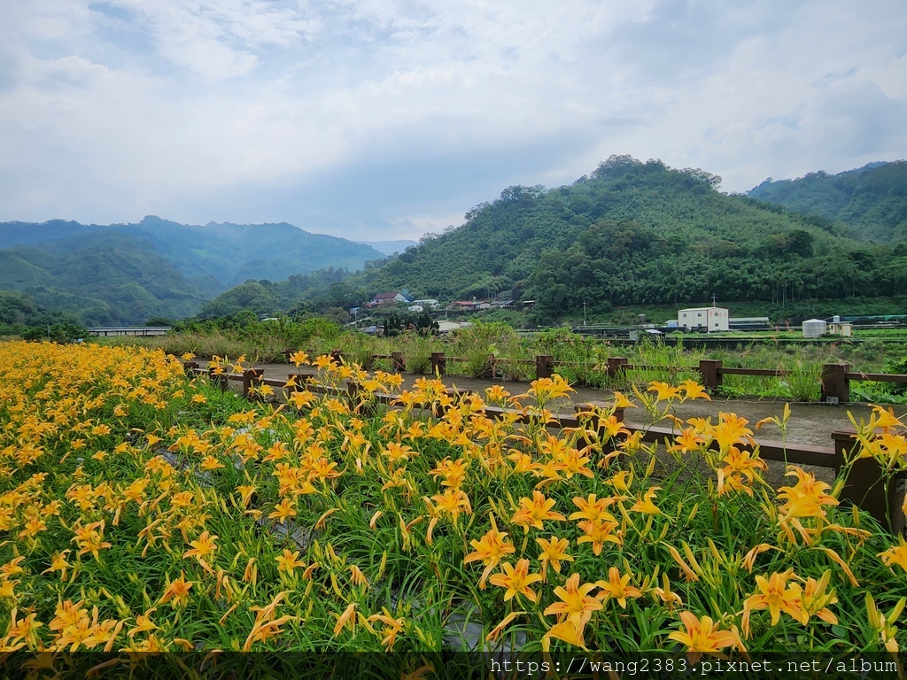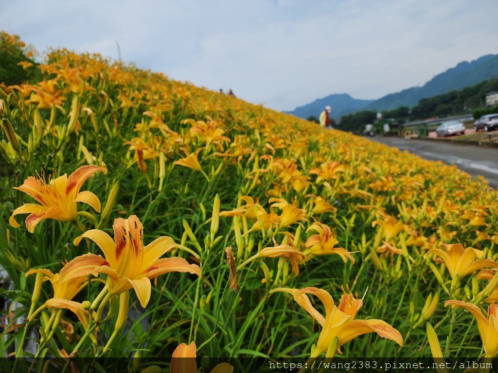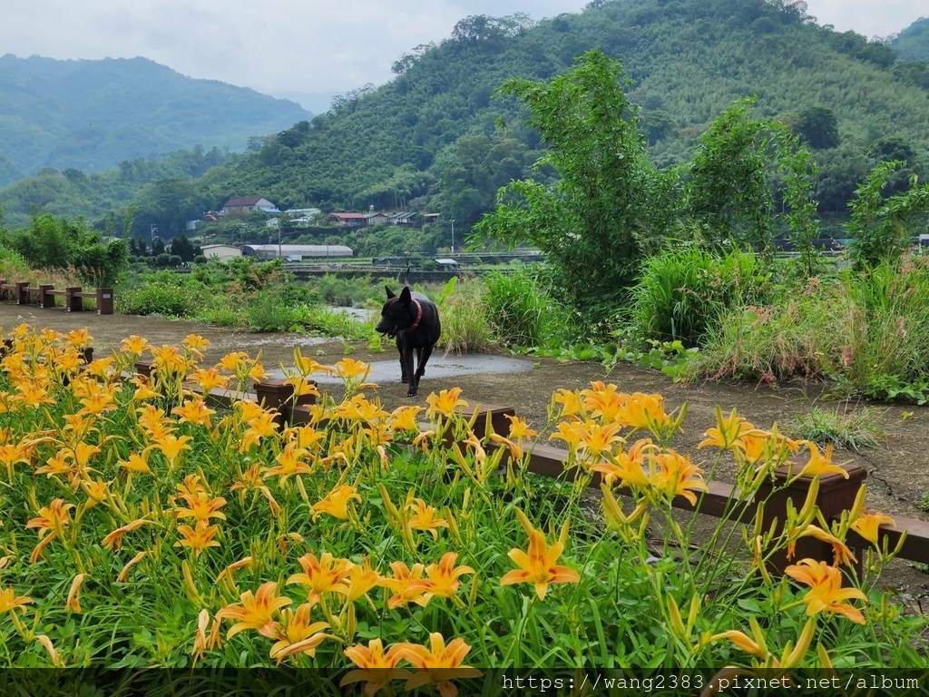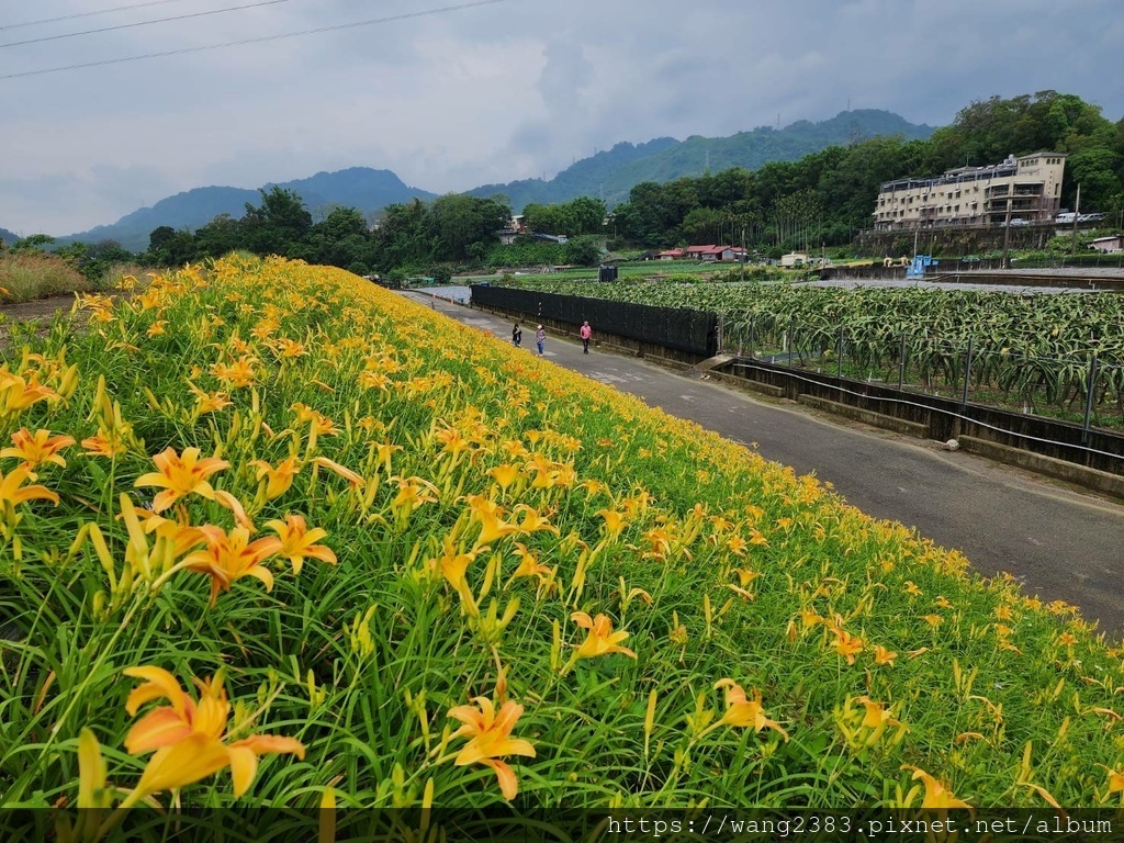 2023年5月20日來此觀賞金針花約開八、九成很美,就在苗栗大湖溪堤岸邊坡上,可能是社區為美化而種,幾年下來每年5月這裡已成為秘密賞花景點。這裡因為臨溪山又在不遠處,拍起照來有不同的美。