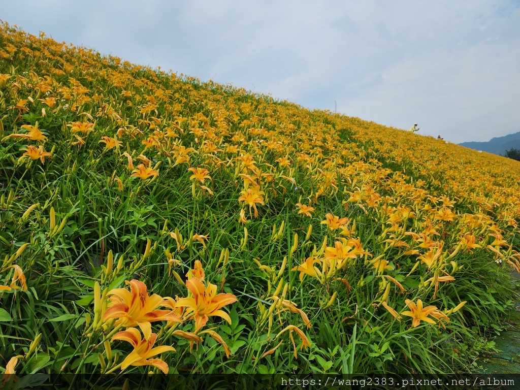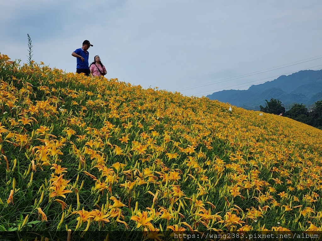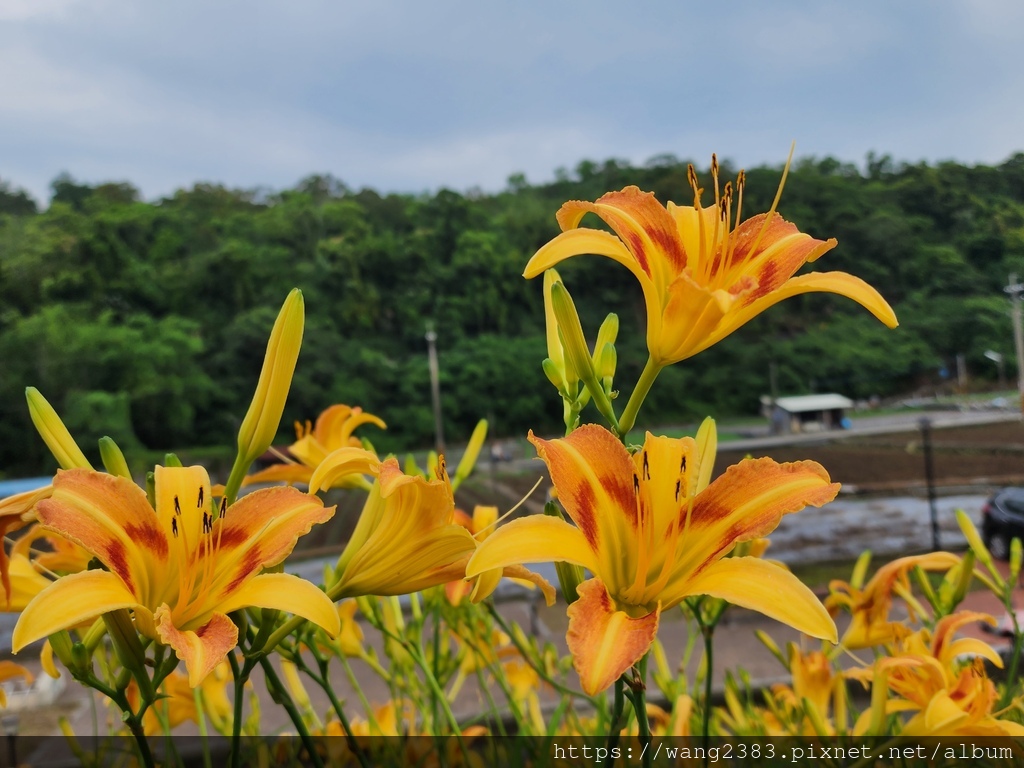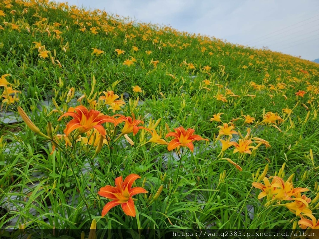 2023年5月20日來此觀賞金針花約開八、九成很美,就在苗栗大湖溪堤岸邊坡上,可能是社區為美化而種,幾年下來每年5月這裡已成為秘密賞花景點。這裡因為臨溪山又在不遠處,拍起照來有不同的美。